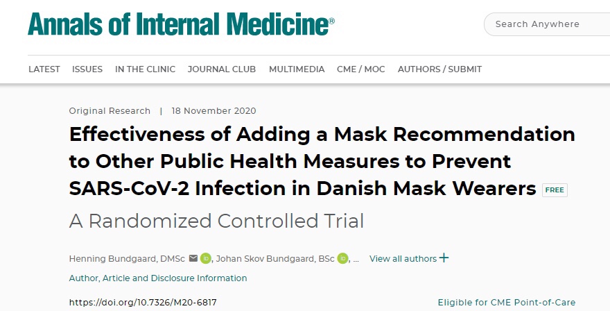¿Sirve usar mascarilla en tiempos de COVID19? Se publicó hace muy pocos días un ensayo clínico aleatorizado (considerado el nivel de diseño más complejo en la investigación primaria) evaluando la utilidad de usar mascarilla quirúrgica durante un periodo de cuarentena (lockdown) en Dinamarca.